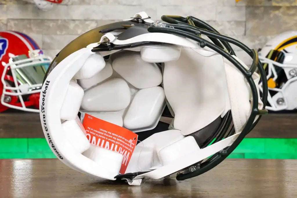 EXCLUSIVE OFFER: All helmets sold by Green Gridiron receive a free 20 mil, Chrome US Flag helmet decal for the back of your helmet! US Flag and other decals purchased at the time of helmet are not applied to helmet by Green Gridiron so you can affix them where you want.