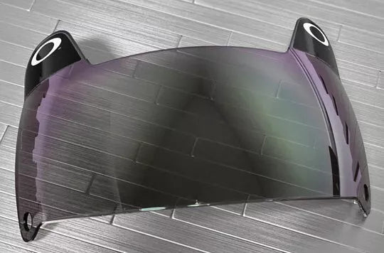 Oakley uses injection molding to shape the shield with unique curvature. The contours are designed with CAD/CAM engineering to maintain clarity at all angles of vision, even at the sides, so your peripheral view is optimized. PLUTONITE shield material inherently blocks 100% of all UVA, UVB, UVC and harmful blue light up to 400nm. That means even clear Oakley shields filter out all the bad rays. All Oakley football shields are manufactured with AFR lens treatment, which translates to anti-fog performance and improved scratch resistance. Optional lens tints allow the player to precisely tune light transmission for game conditions, offering yet another competitive advantage with Oakley technology.