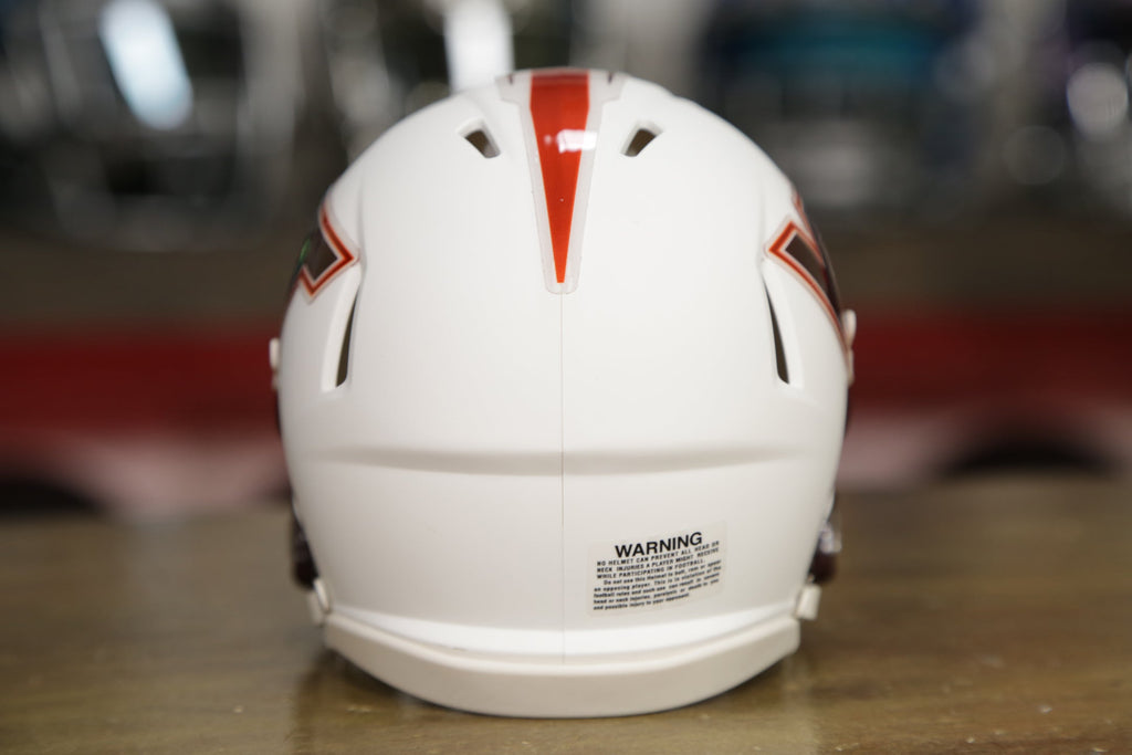 The Riddell Speed Mini Helmets are an easy and affordable way to join the collectors club and they make a perfect gift that everyone loves without breaking the bank! Riddell mini helmets are about half the size of the Authentic and Replica helmets. They model the official team designs and colors on a smaller scale. Coming in at about 6” tall, you can collect all your teams’ mini’s without taking up much room. Put them on your desk, a shelf, your dashboard, or get a Mini Helmet Hanger and put them on the wall!